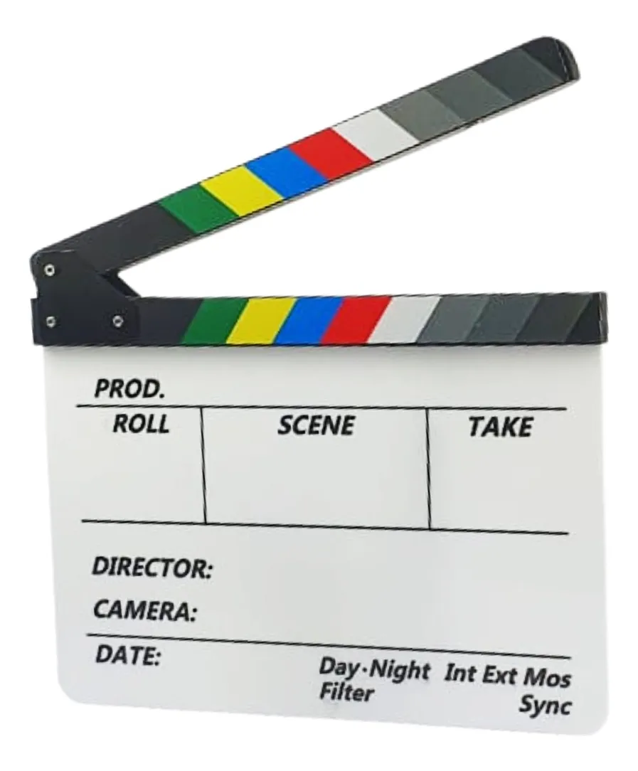Esta Claquete Profissional é de manuseio fácil e leve, acrílico de qualidade, fácil de ser escrito ou limpo e longa duração. Pode ser escrito com canetas de quadro branco e outros materiais removíveis. Seu material em acrílico permite escrita sobre a tela e fácil remoção sem arranhões e danificações no equipamento.